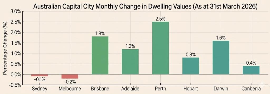As we closed out the first quarter of 2026, the national home value index rose by 0.7% in March. This took national dwelling values 2.1% higher over the first three months of the year. However, the headline figure masks an increasingly diverse set of outcomes from city to city.